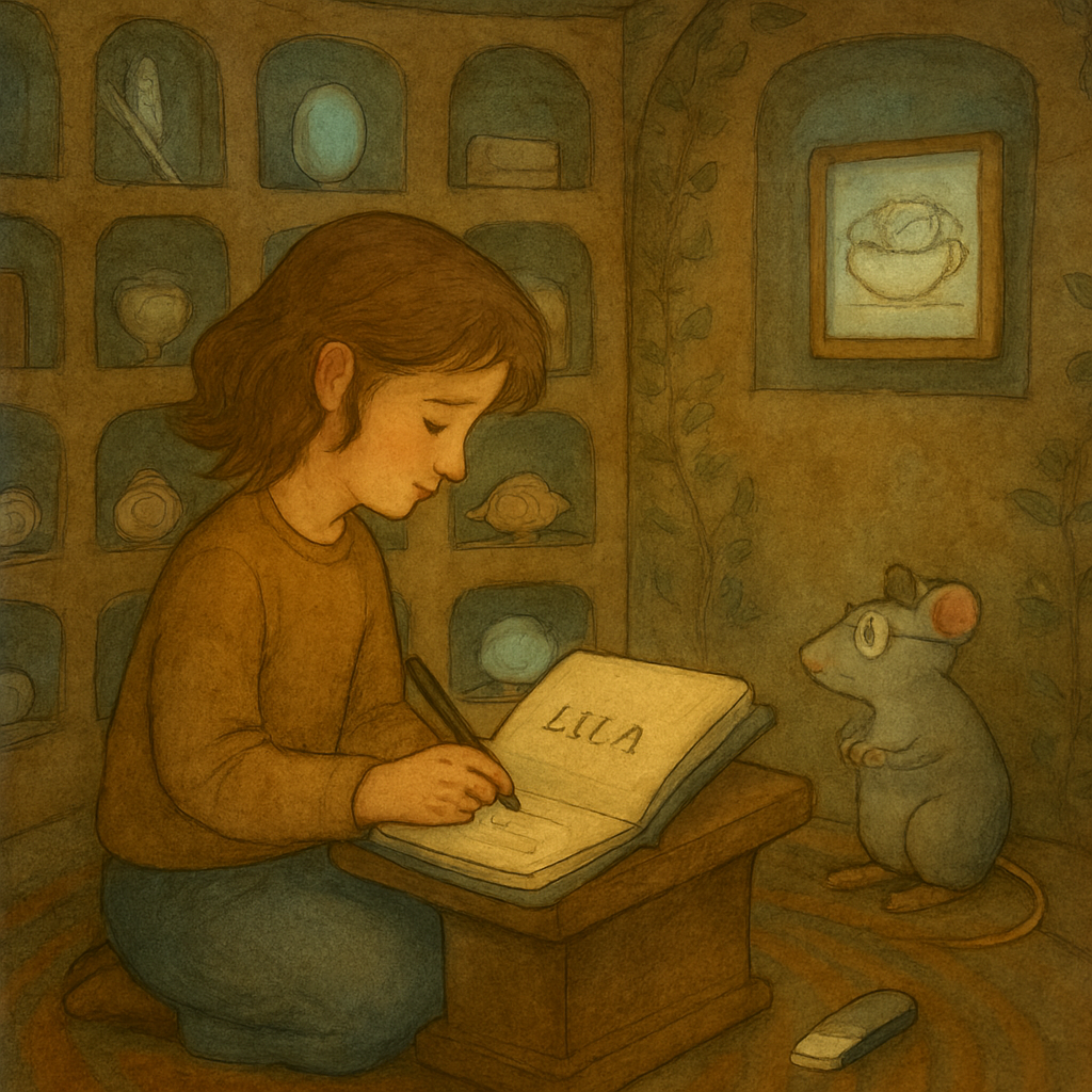 The walls were lined with shelves, but not for books. For objects. Small ones. A button. A feather. A folded note. A pebble with a heart-shaped crack.