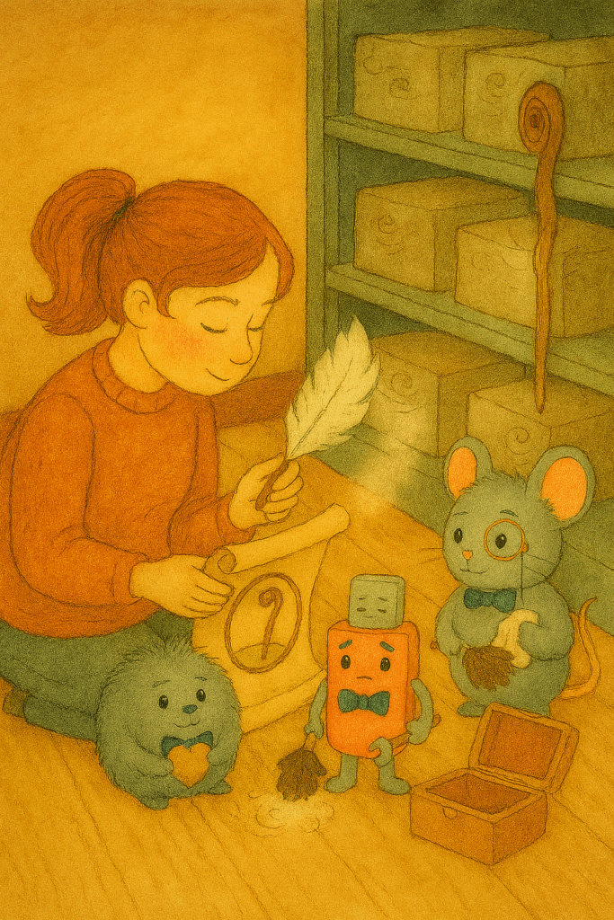 Patch dusted the corners with quiet precision, her wrench resting nearby.