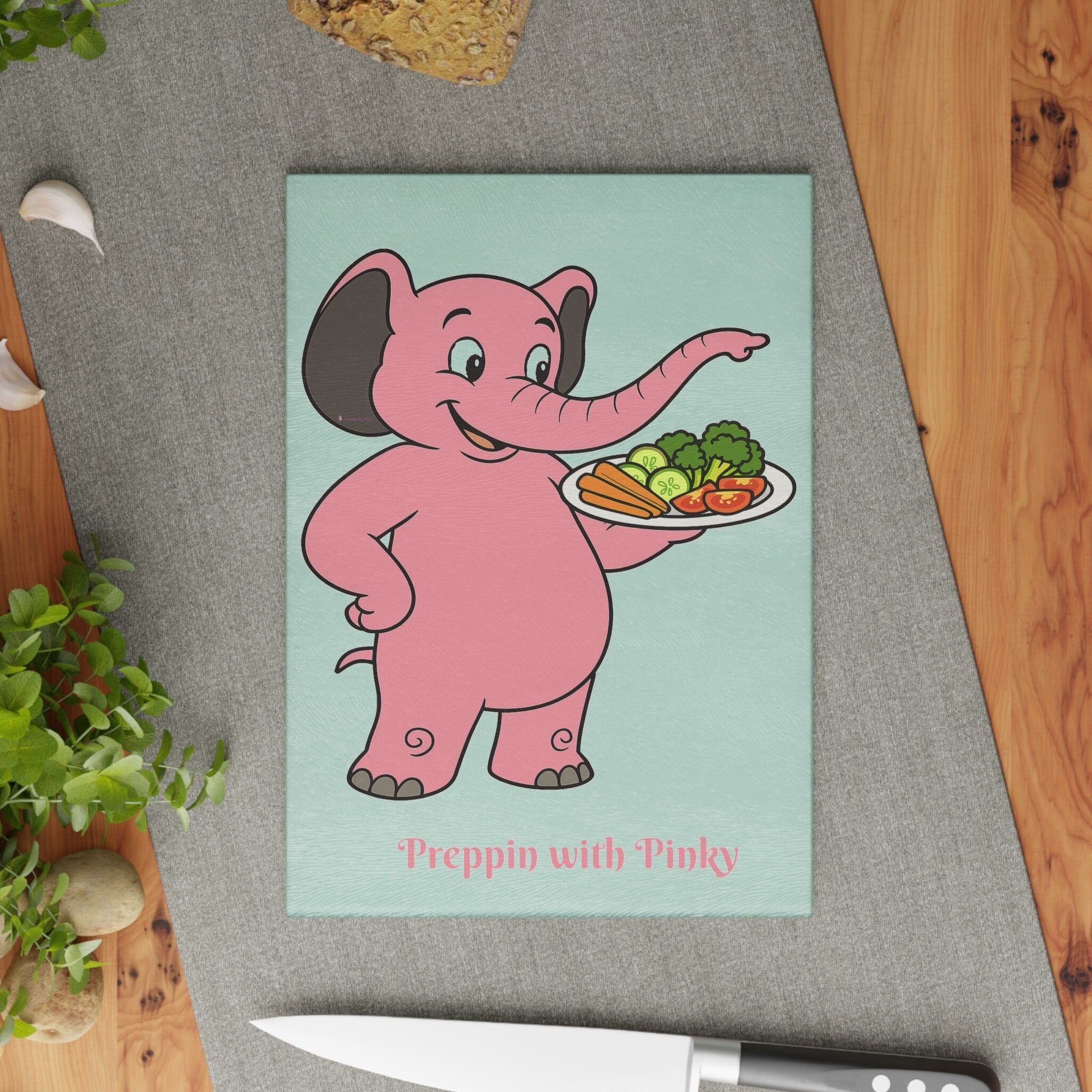 Brighten your prep routine with Preppin’ with Pinky! This whimsical elephant brings personality to your kitchen with bold color and retro charm. Crafted from durable tempered glass, this cutting board makes a perfect surface for slicing, dicing, and showing off your summer style.