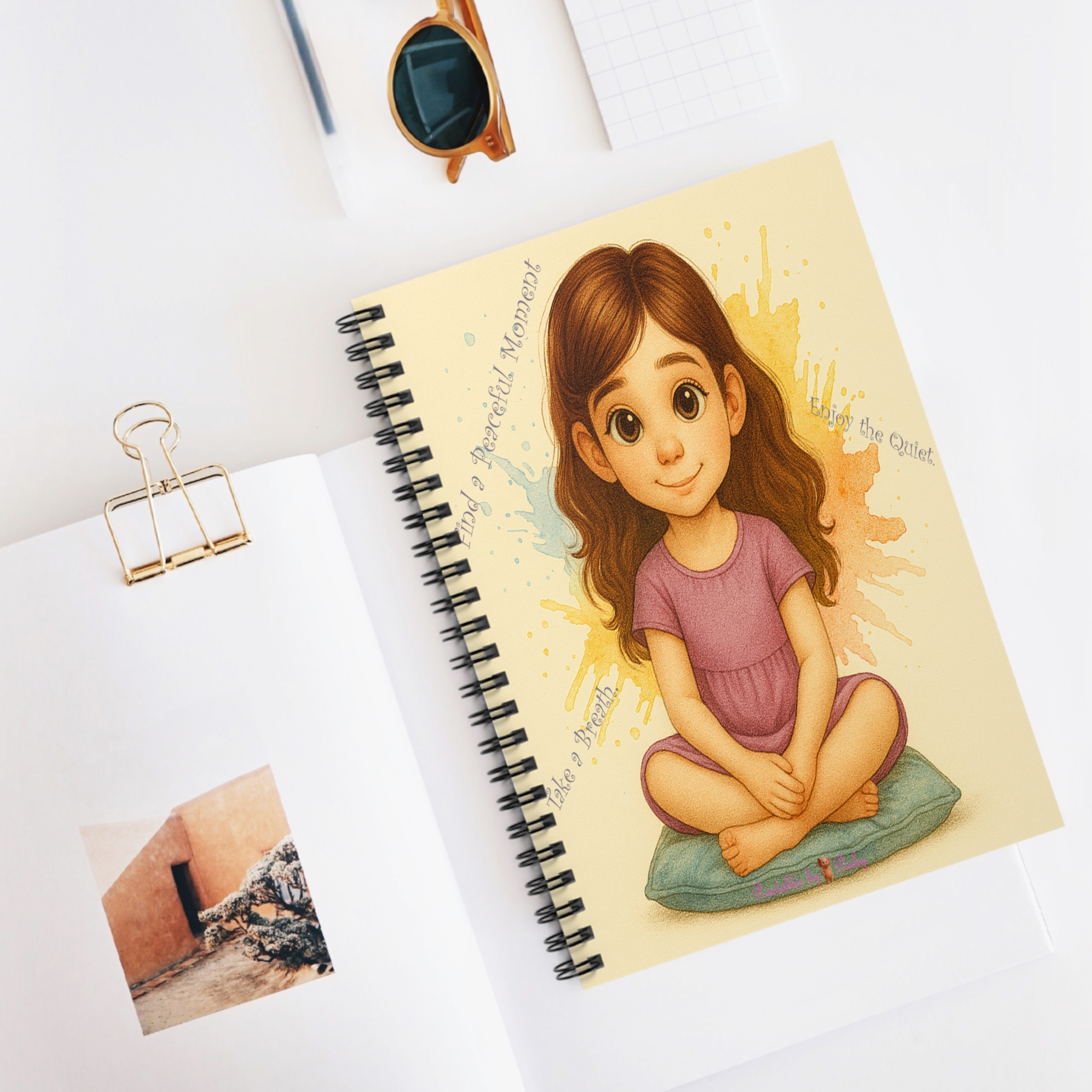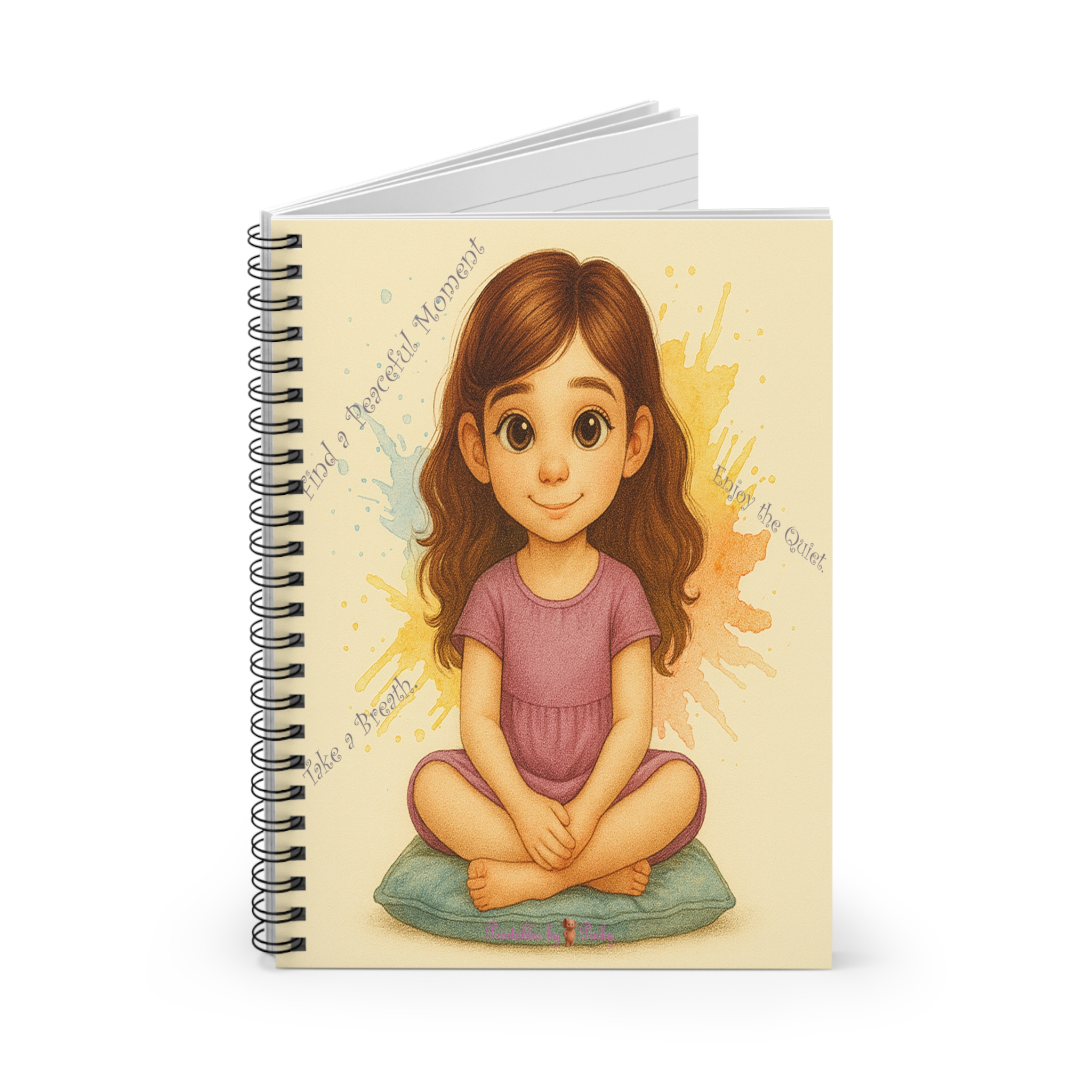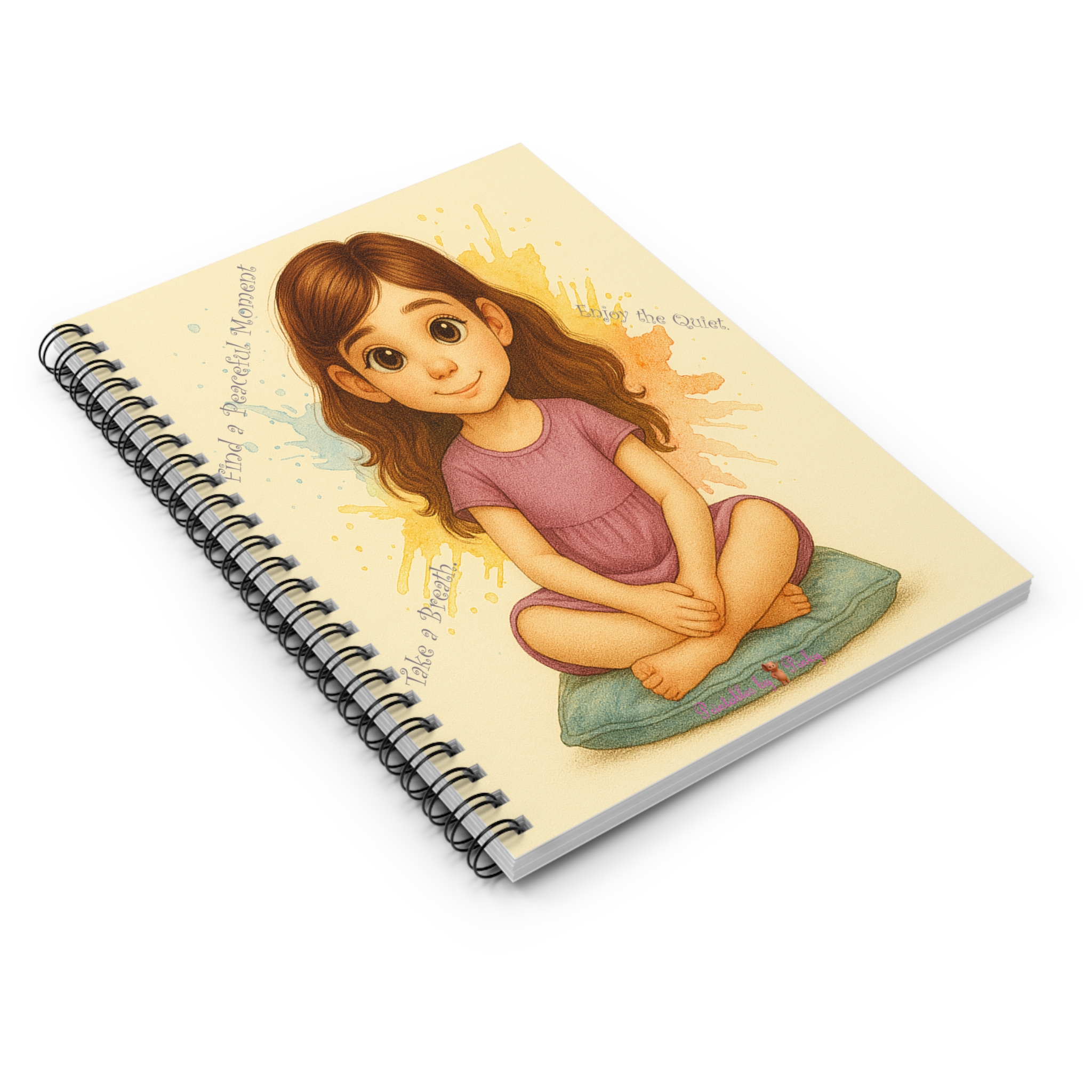 Soft, simple, and quietly joyful — this ruled spiral notebook carries a warm, hand-drawn illustration of a seated girl that invites slow moments of thought. The creamy, 90gsm lined pages offer smooth, dependable paper for journaling, lists, class notes, or sketching small ideas. A metal spiral binding lays the notebook flat for comfortable writing and lets you remove pages cleanly when you need to share or archive. The inside back cover includes a document pocket to keep loose notes, receipts, or keepsakes tucked in. Sized at 6″ x 8″, it slips into backpacks and tote bags easily and feels like a gentle companion for everyday routines or reflective pauses.