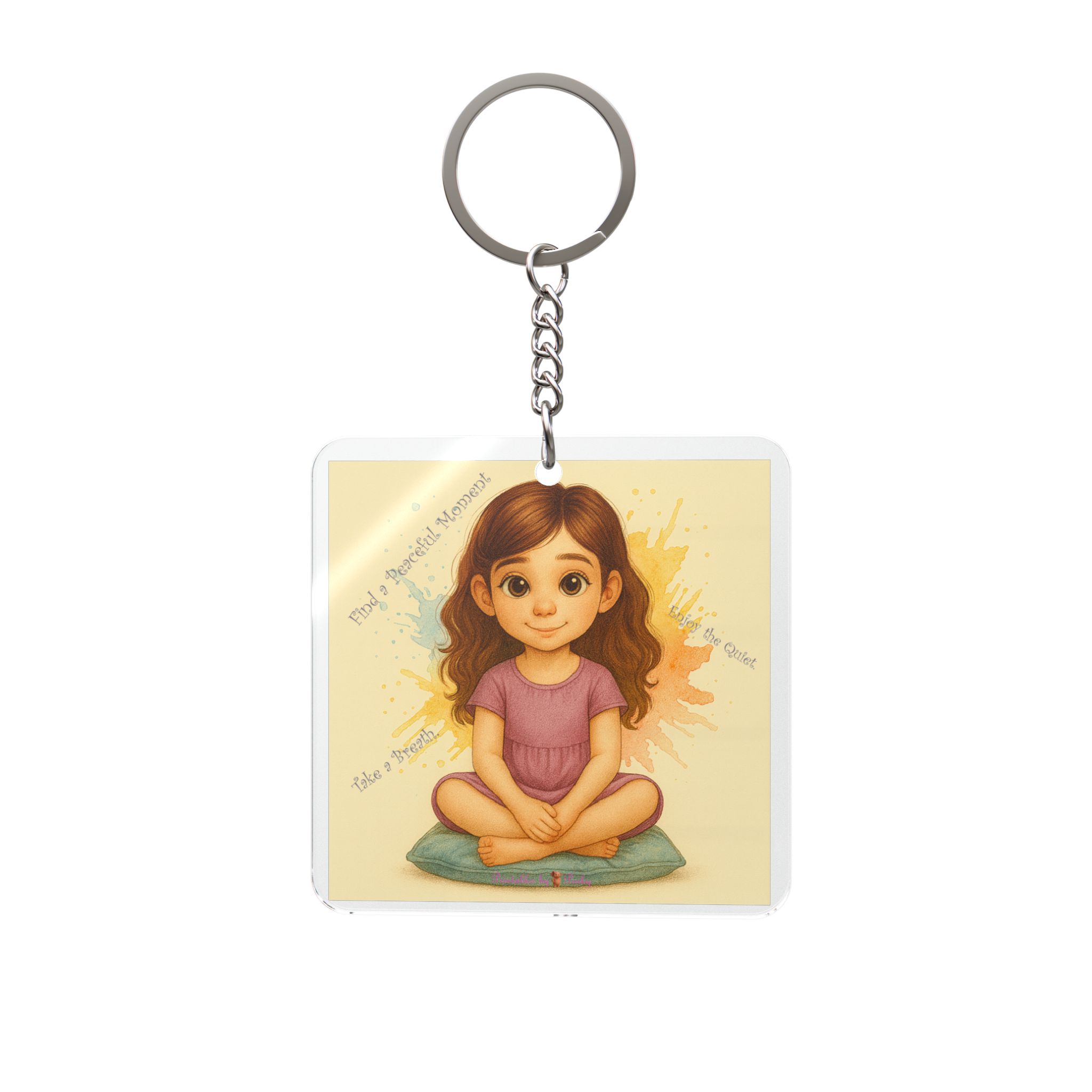 A compact, clear acrylic square that carries a warm, whimsical illustration wherever life takes it. Lightweight and glossy, this square keychain catches sunlight and softens everyday moments with its gentle artwork. It slips onto a set of keys, clips to a backpack, or tucks into a purse — a small, steady companion that brightens routines and keeps a favorite image close. The transparent acrylic lets the design show through from both sides, giving depth and a subtle glow to the picture. Built to withstand daily wear, it resists breaking and keeps its shine over time.
